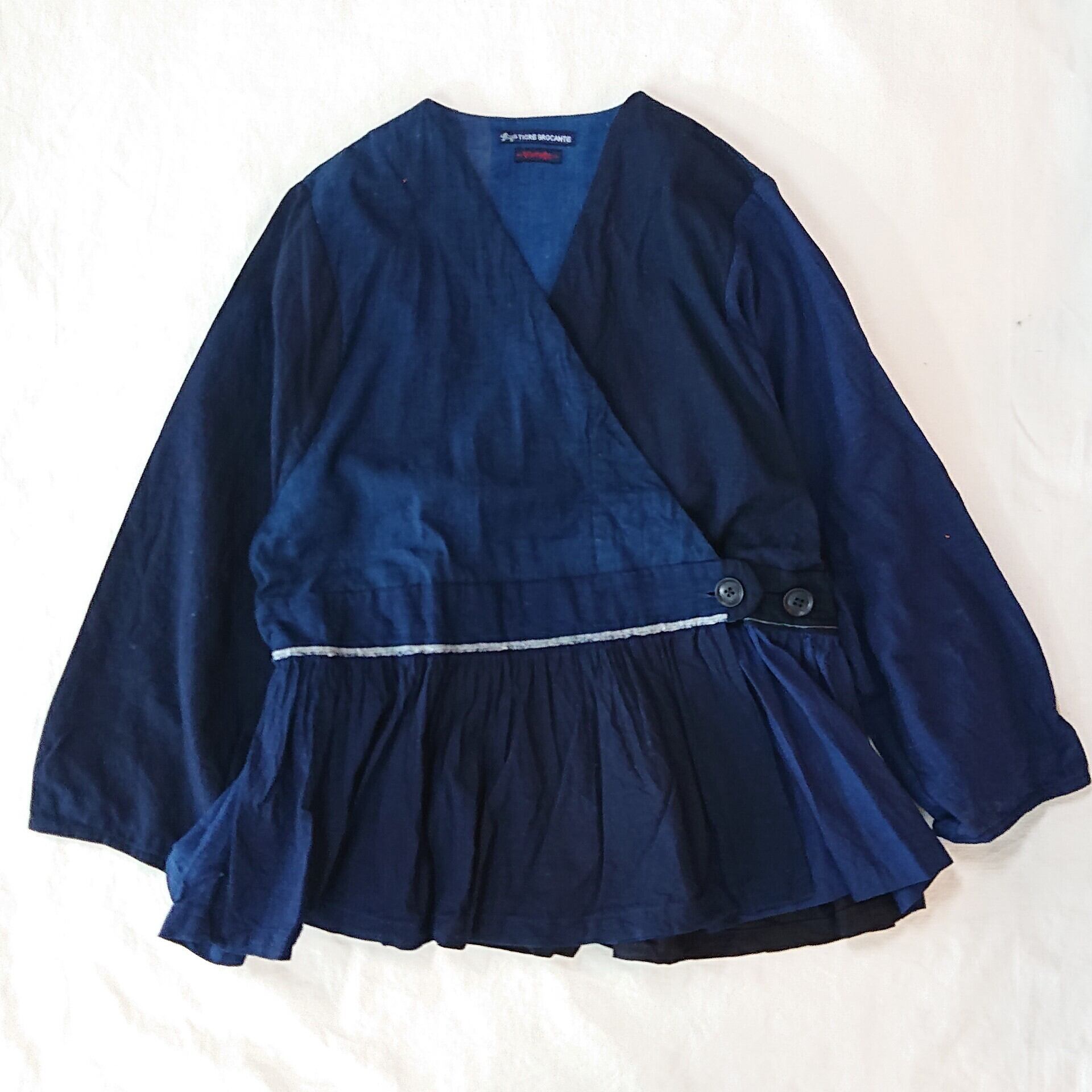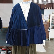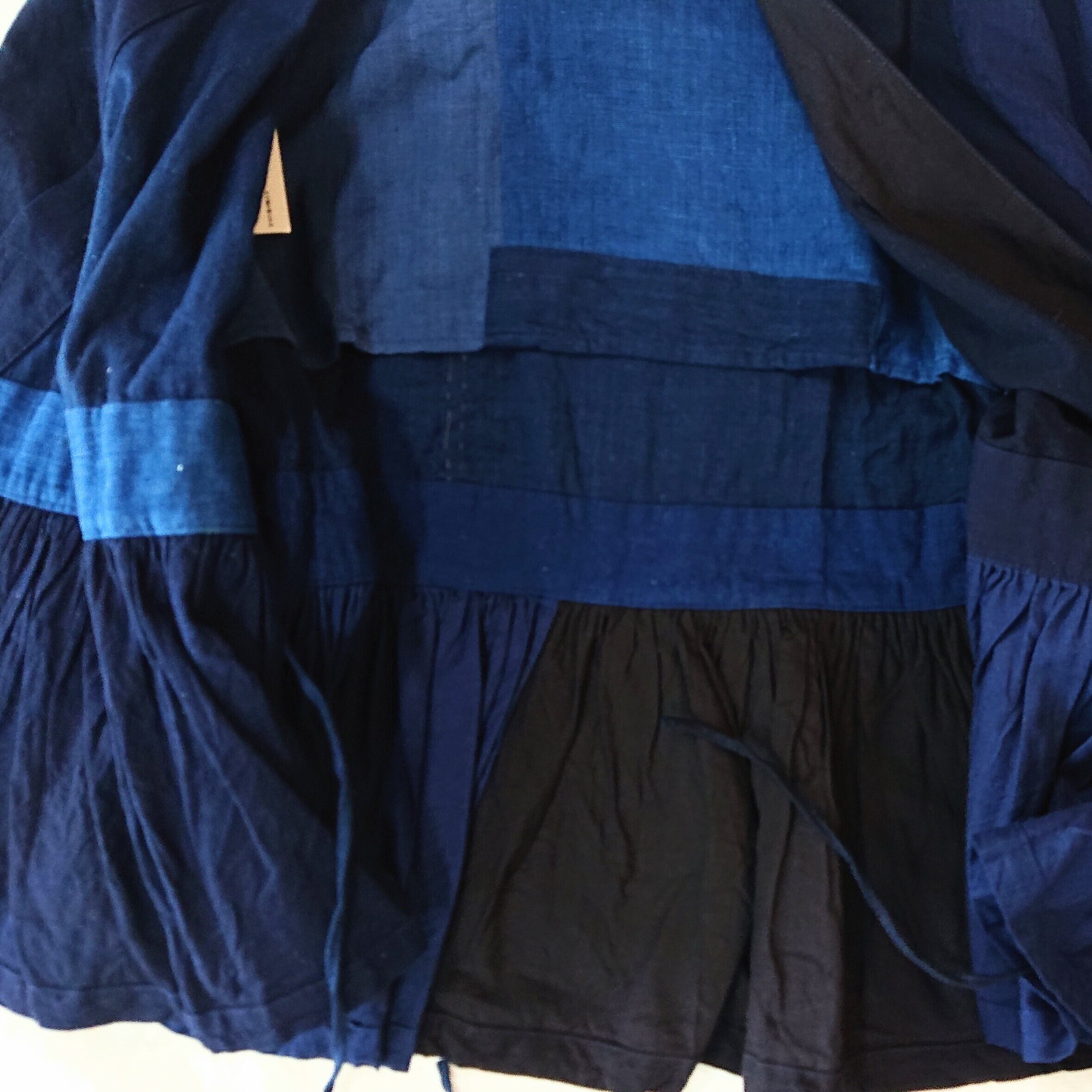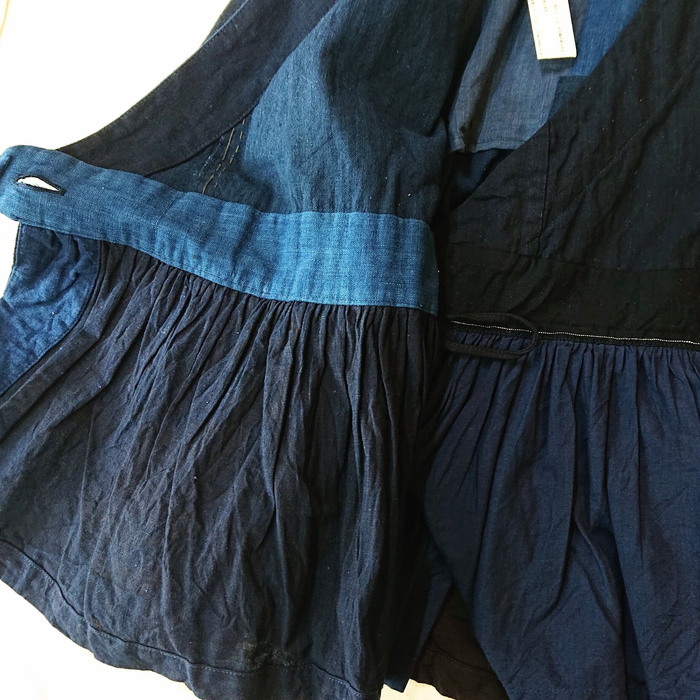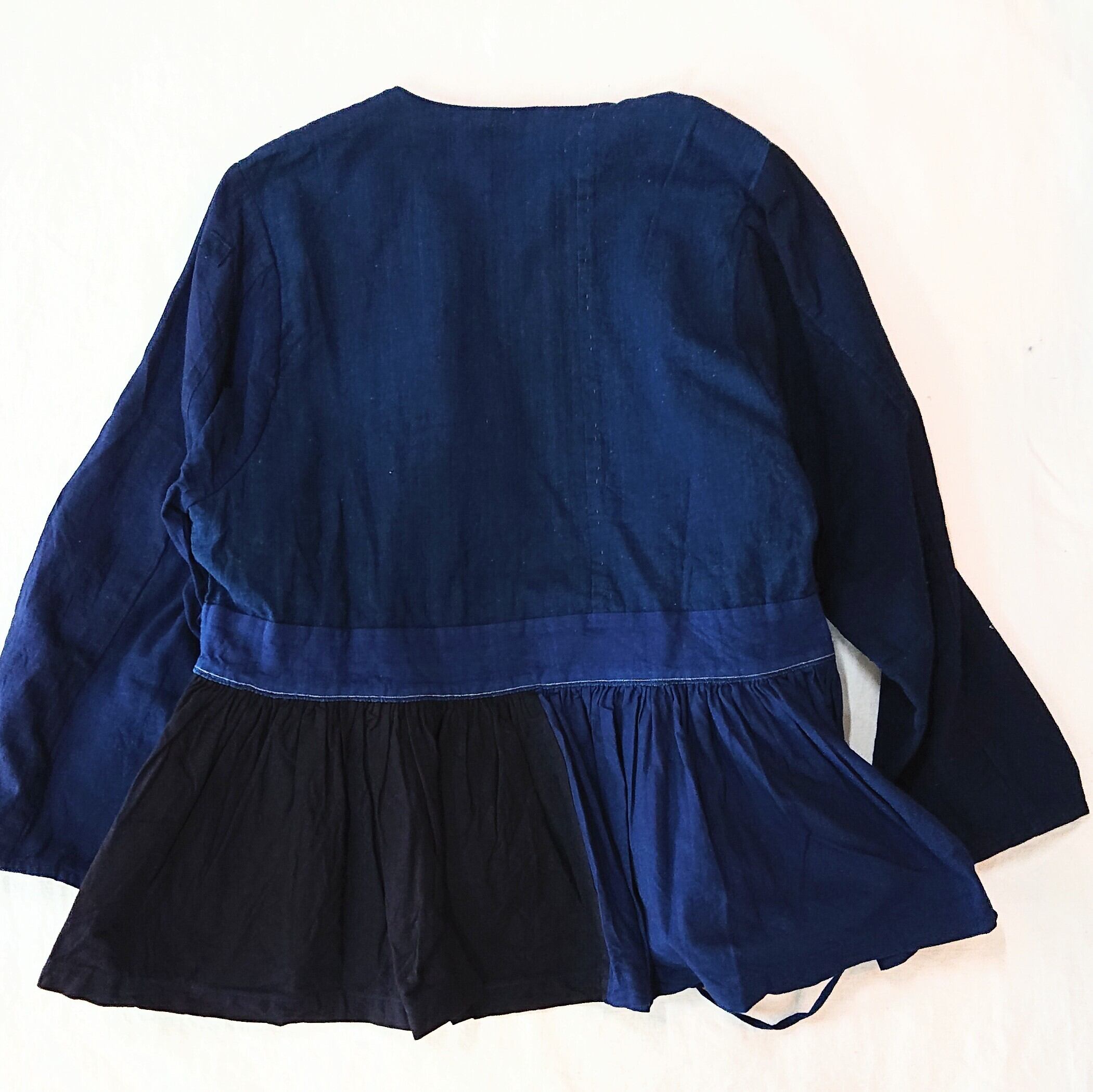 Tigre brocante 藍の古布ベルトギャザーチュニック