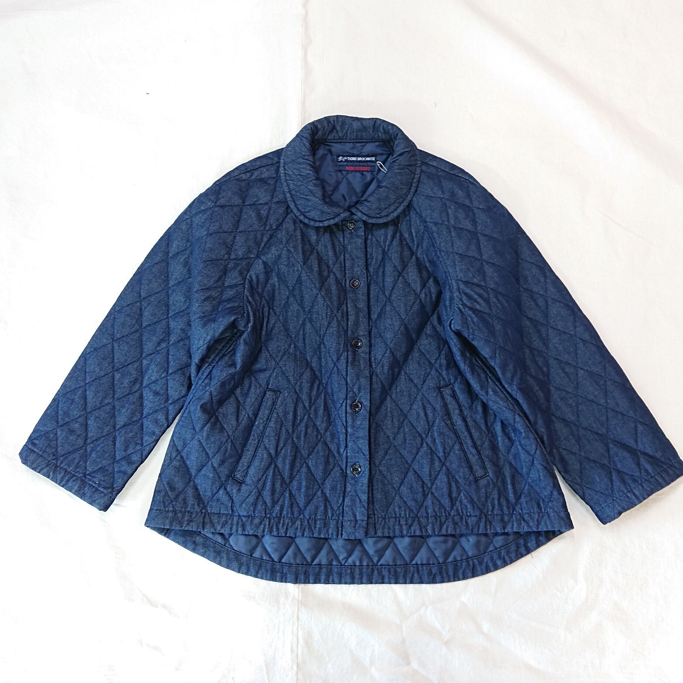 毎年人気、デニムキルティングのレディースジャケット。着膨れしないスッキリとしたテクスチャのキルティングを使用して仕立てました。丸襟やAラインのシルエットでレディースらしさもありながら、ラグランスリーブで肩周りはストレス少なめ。後ろの着丈が長いデザインはパンツスタイルとも相性が良く、幅広いスタイリングで活躍してくれる万能アウターです。