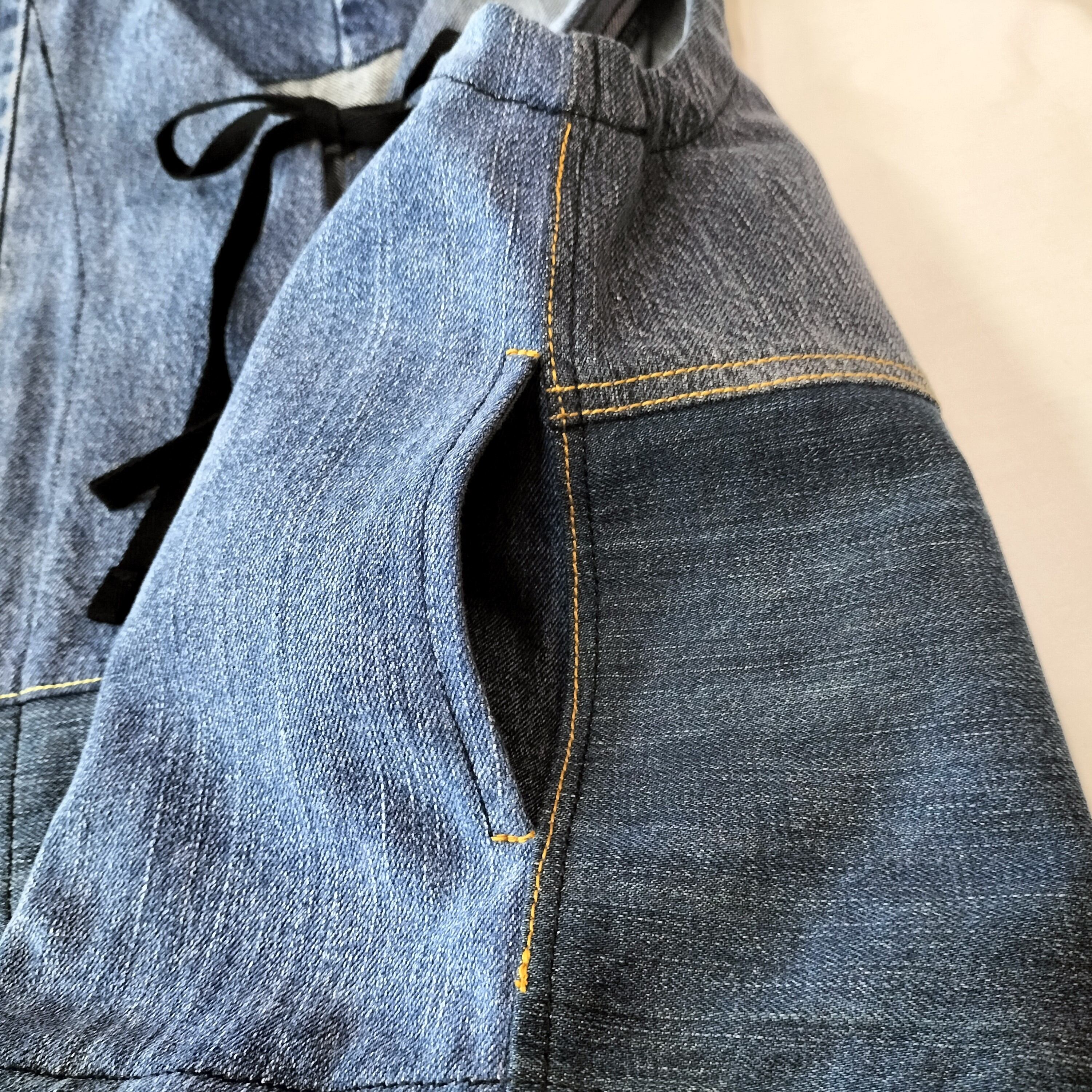 独自のデザインで、異なるデニムの質感と色合いが見事にミックスされ、スタイルにアクセントを加えます!