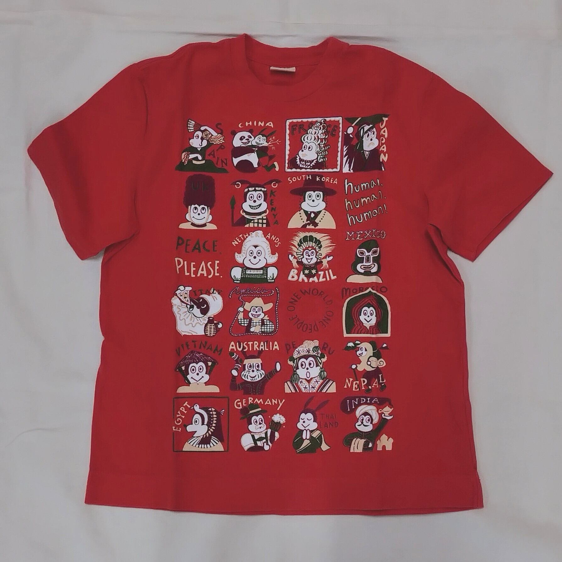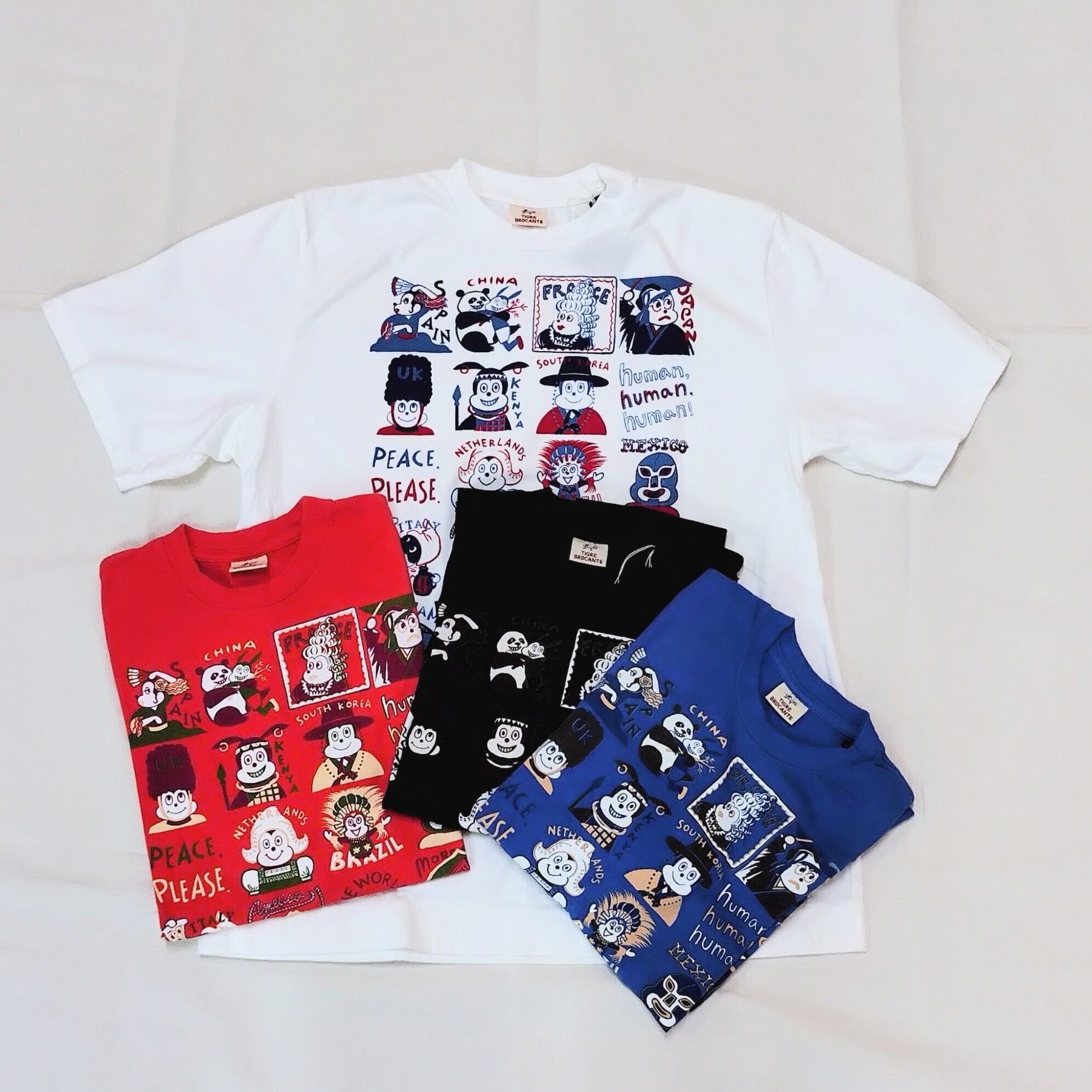 世界各国のナッティーが集合。国は違えど世界は一つ、人はみな仲間であるというメッセージが込められる”One world”半袖T。形はプレーンに、ティグルの柄物との合わせや、差し色として使えるカラー4色をご用意しました。