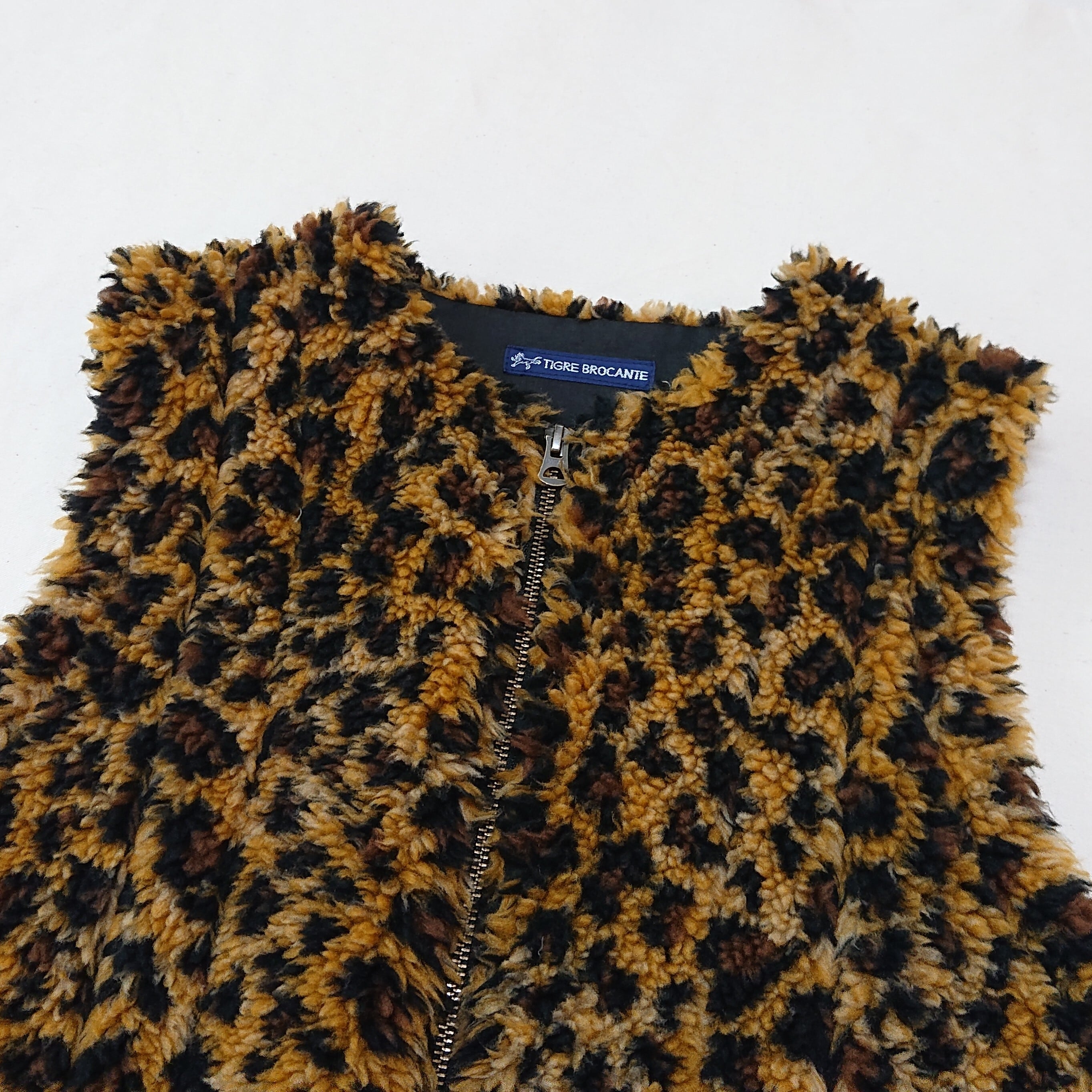 リサイクル素材を使ったレオパードボア生地から作るレディースのロングベスト。フロントのジップはWジップになっており、丈はヒップまですっぽり覆ってくれる長さになっています。軽く暖かなボア素材のボリュームにレオパード柄で存在感のある一着に仕上がっています。