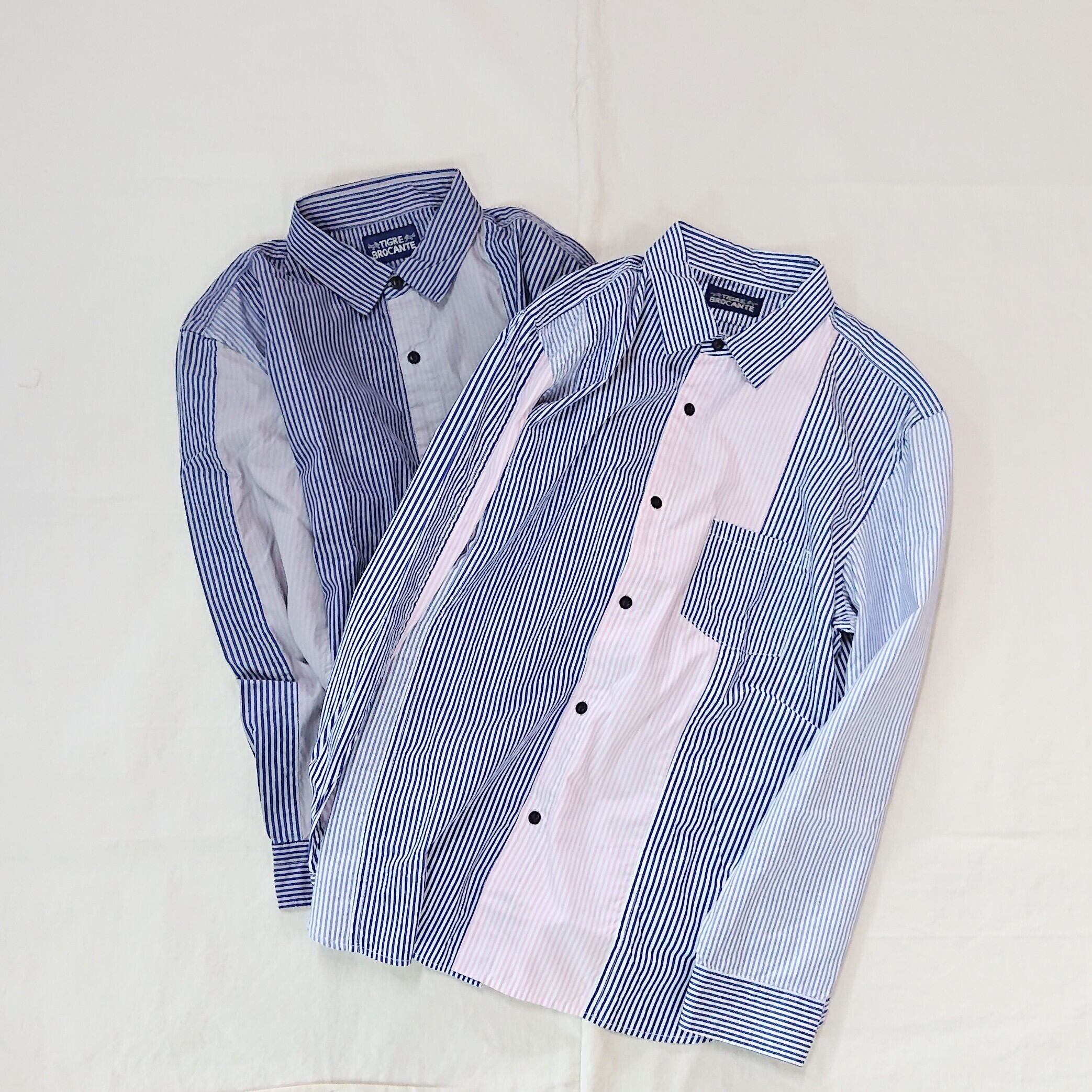 様々なロンドンストライプ生地MIXし仕立てた春のシャツ。