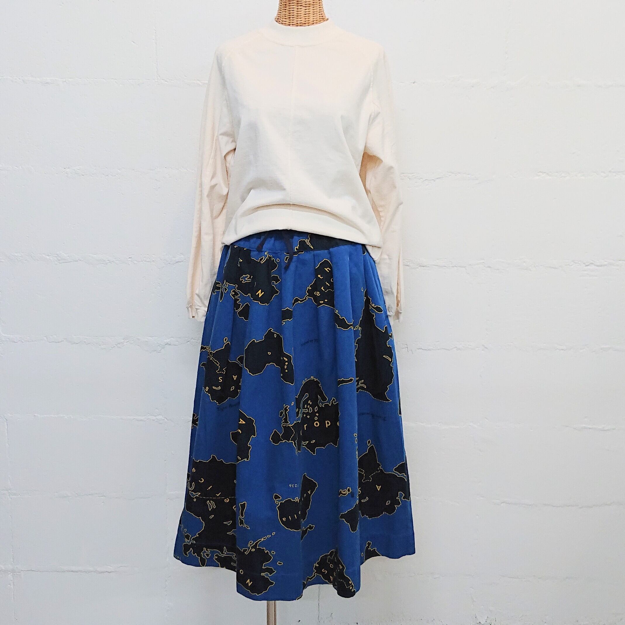 『ビンテージの軍用地図や軍用地球儀を元に洋服で着やすいデザインに仕上げたオリジナルの素材。柄の中の数字は大西洋・太平洋・インド洋・北極海・南極海の水深になっており、